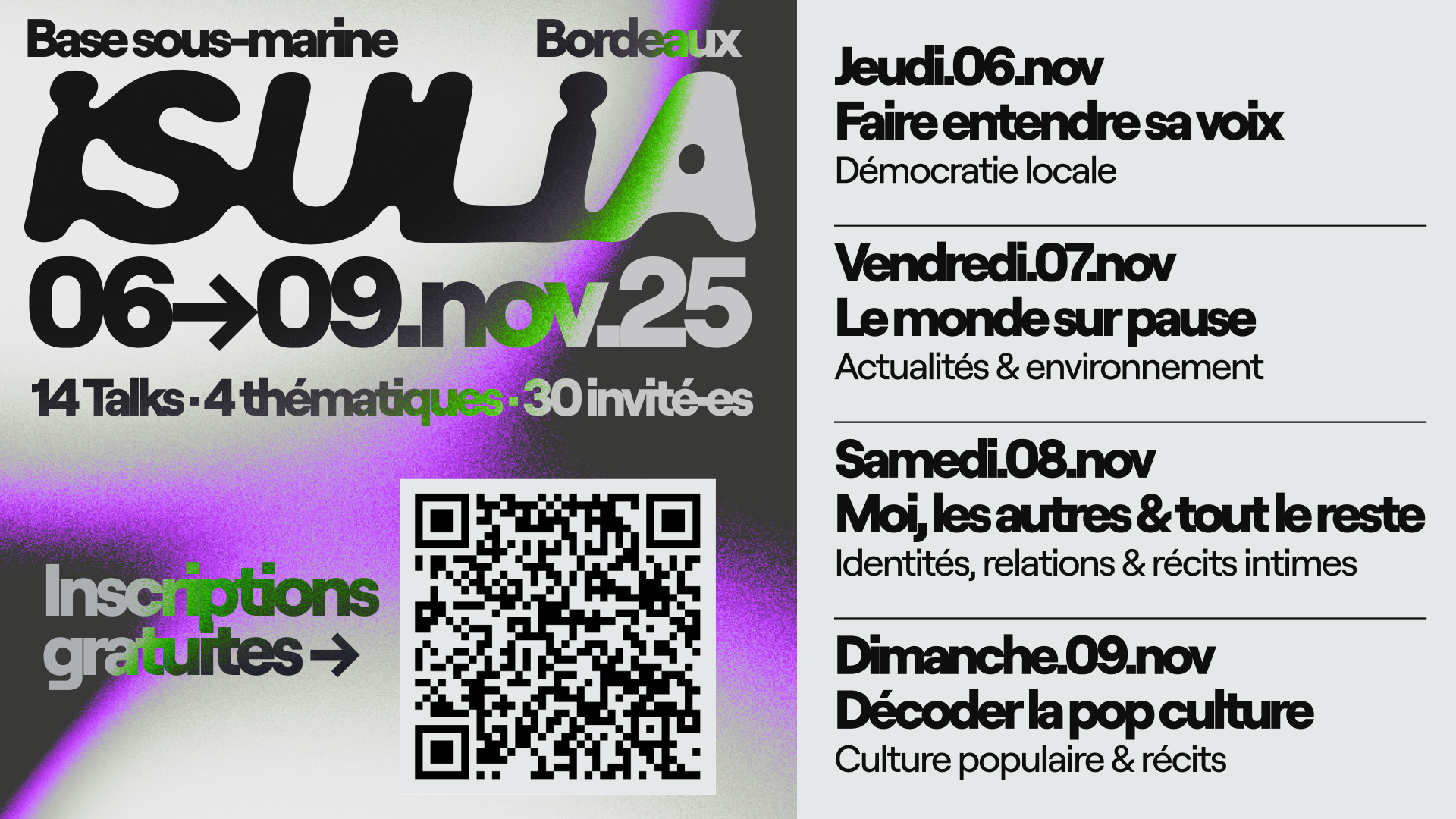 Plus de renseignements et inscriptions gratuites >> https://shotgun.live/fr/events/isulia-festival-2025-talks